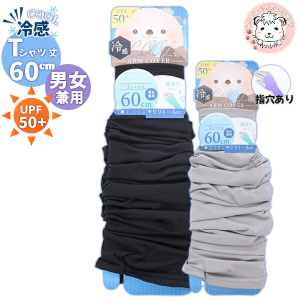 uv アームカバー 冷感 COOL 指穴あり キシリトール加工 Tシャツ丈 60cm | 男女兼用 接触冷感 紫外線対策 UVカット UPF50+ 日焼け防止 日焼け対策