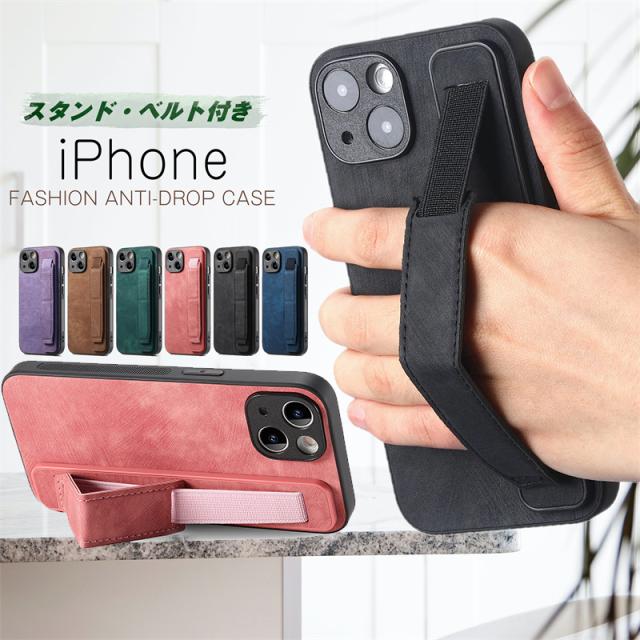 iphone 12プロマックスケース かわいい ベルト付き iPhone12 12Pro 12ProMax ケース iPhone 15 14 13Pro 12 11Pro SE 第3世代 アイフォン XR XS 8 7 スマホケース iphone12ケース 携帯カバー 大人 シンプル おしゃれ 可愛い 韓国 落下防止 ホールドベルト スタンド付き スリム