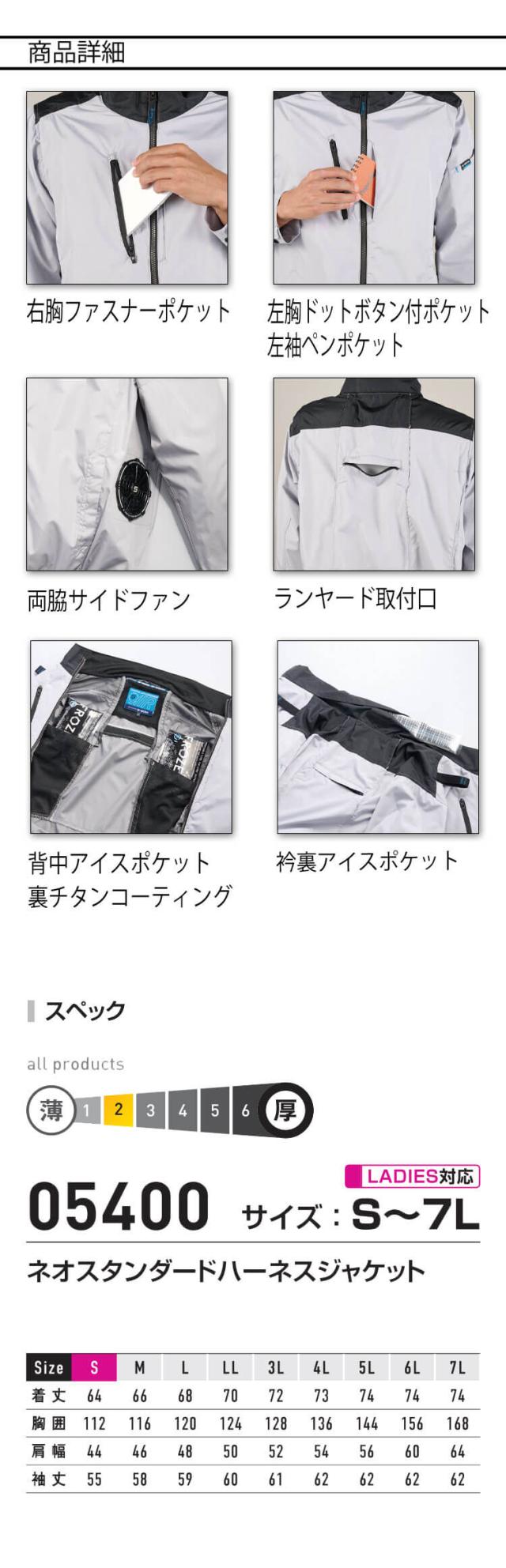 シンメン SHINMEN S-AIR ネオスタンダードハーネスジャケット(ファンなし) 05400 長袖 ファン付き作業着 サイズ6L・7L