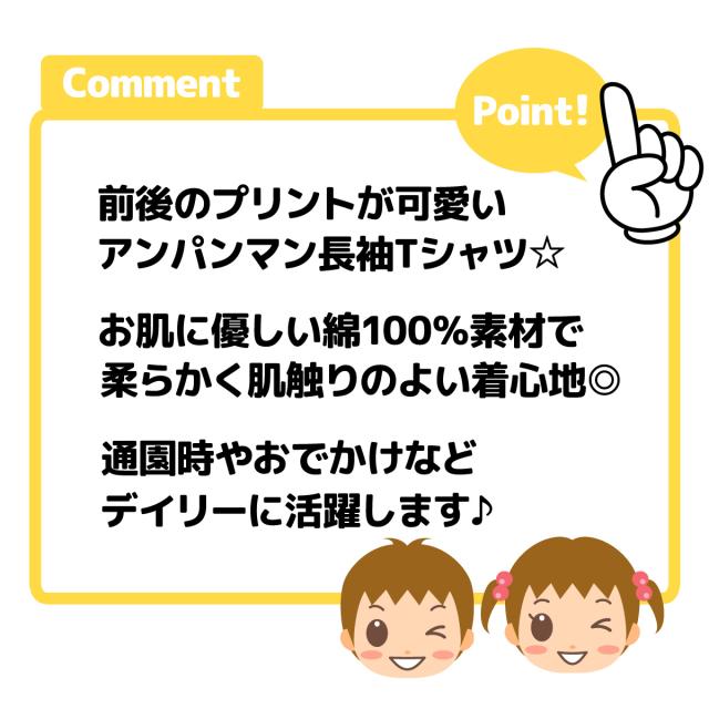 【送料無料】男児 女児 ベビー 綿100% 長袖 Tシャツ アンパンマン ベビー服 男の子 女の子 iw-1037【メール便対応】