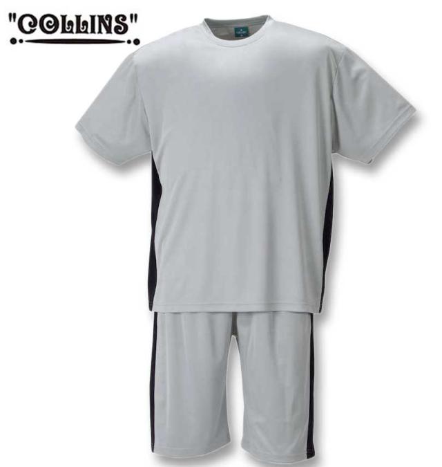 大きいサイズ COLLINS ハニカムメッシュ 脇切替 半袖Tシャツ ハーフパンツ 上下セット グレー×ブラック 3L 4L 5L 6L 8L/1258-4249-1-49