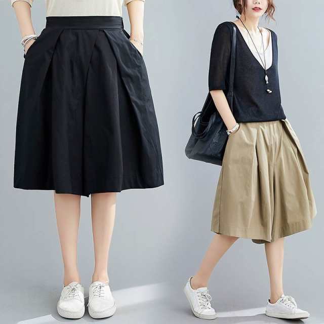 レビュー高評価商品 即納OK 多機能デザイン おしゃれ レディース レトロ 膝丈 フレア タック 半ズボン ガーリー キュロットスカート ミディ丈 大人可愛い 在庫わずか ハーフパンツ パンツ SNS話題 台形 お買い得プライス