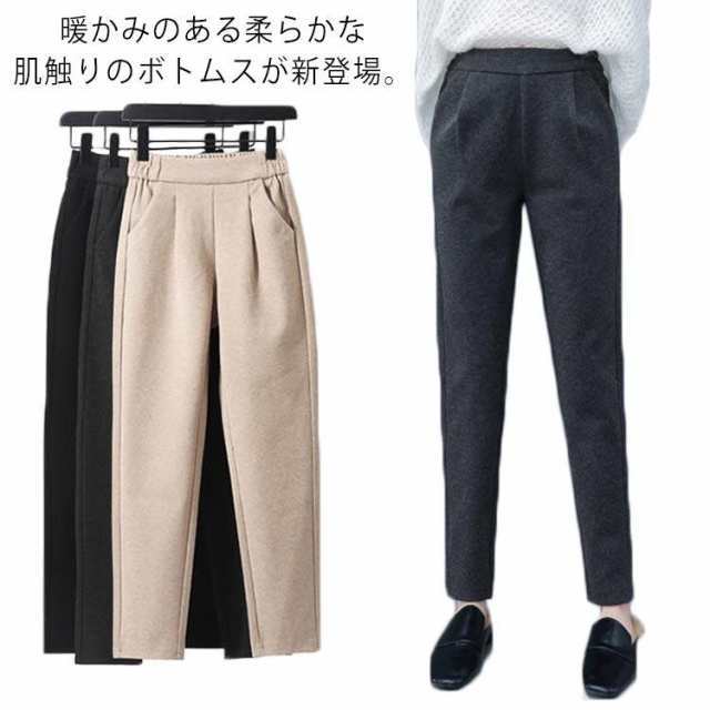 話題商品 レビュー高評価 スラックス レディース 季節限定アイテム 毎日使える便利品 パンツ 厚手 九分丈 楽チン ロングパ タック入り ウエストゴム ロング丈 テーパードパンツ フェイクウール 即納対応中 送料無料
