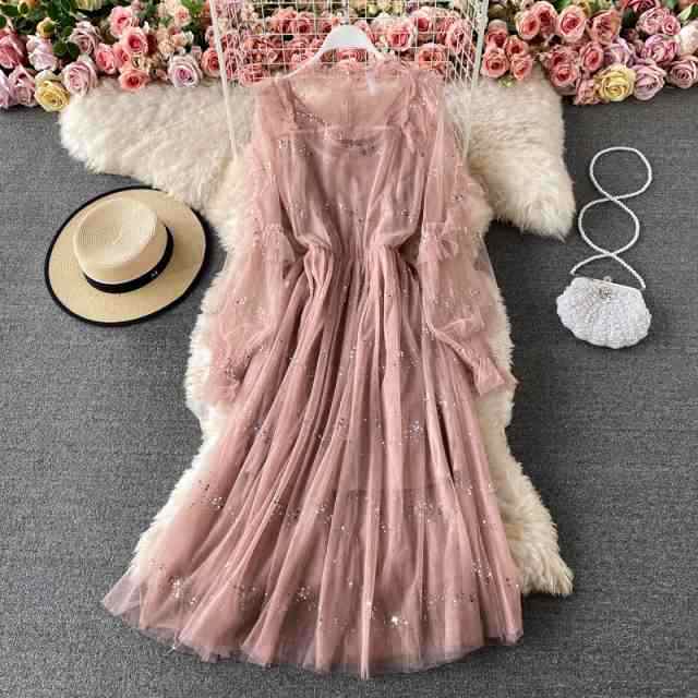 人気急上昇 ランキング常連 多機能デザイン レディース 家中時間充実化 長袖 ドレス チュール きれいめ シフォン インナー エレガント キャミ ワンピース Aライン 白 フレア 今だけ 2点セット 即納対応中