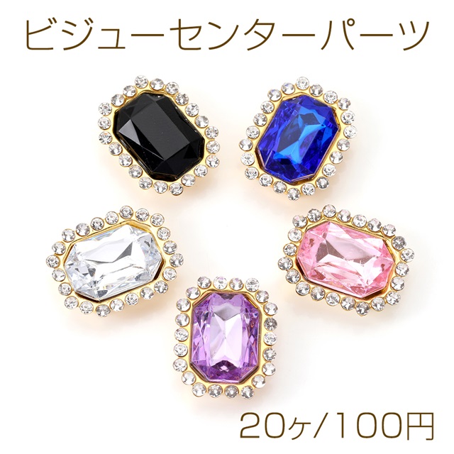 アクリルビジューパーツ 台座付きビジューパーツ 貼付け可 長方形型 ゴールド 15×19mm(20ヶ)