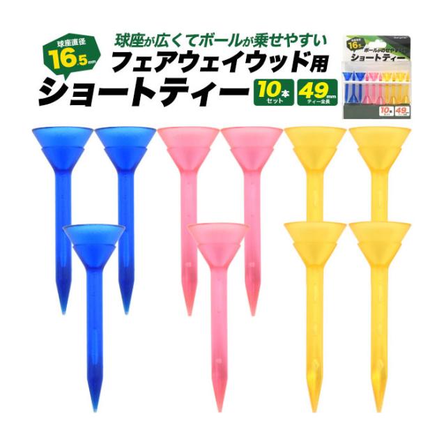 ボールが乗せやすい ショートティー10本セットフェアウェイウッドに最適なショートティー10本セット。球座が大きく設計されているので、ボールが乗せやすく落ちにくくなっています。また、力が伝わりやすいので芝に挿しやすくなっています。