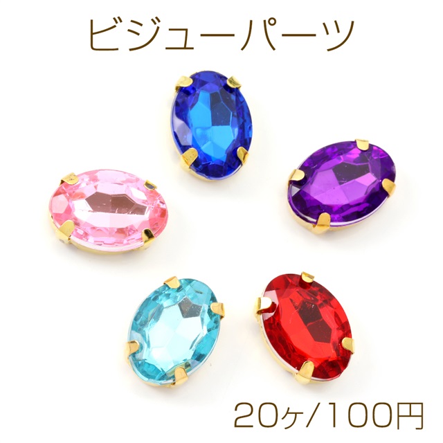 アクリルビジューパーツ 台座付きビジューパーツ 爪付き ステンレス製 貼付け可 縫付け可 オーバル 楕円形 ゴールド 10×14mm(20ヶ)