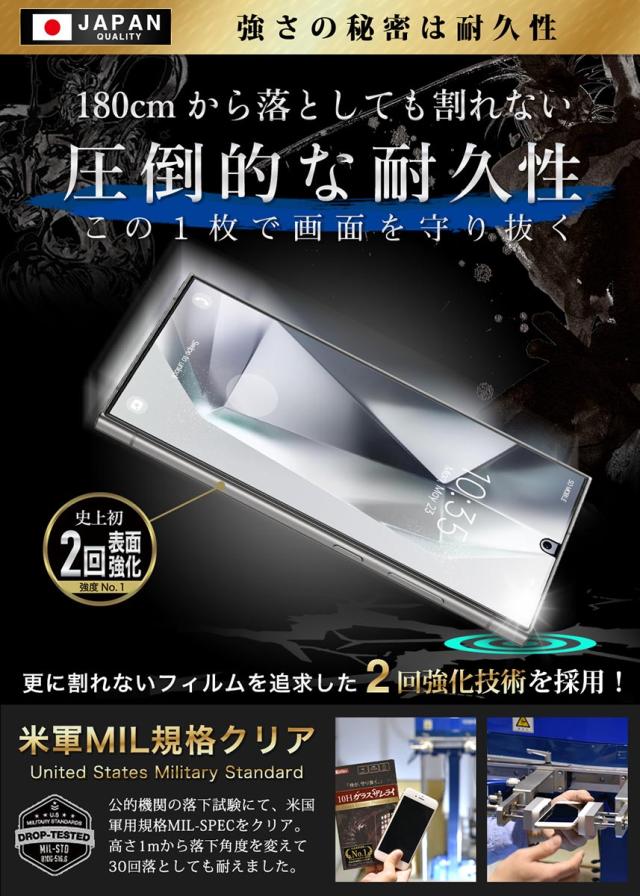 Galaxy S24 Ultra SC-52E ガラスフィルム 全面保護フィルム 指紋認証対応 ブルーライト32%カット 目に優しい ブルーライトカット 10H ガラスザムライ フィルム 液晶保護フィルム OVER`s オーバーズ 黒縁 TP01