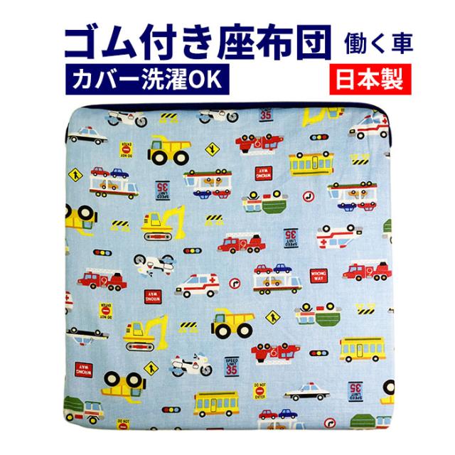 座布団 ゴム付き 働く車 保育園 幼稚園 こども園 男の子 ざぶとん はたらくくるま 入園 入学 椅子 固定