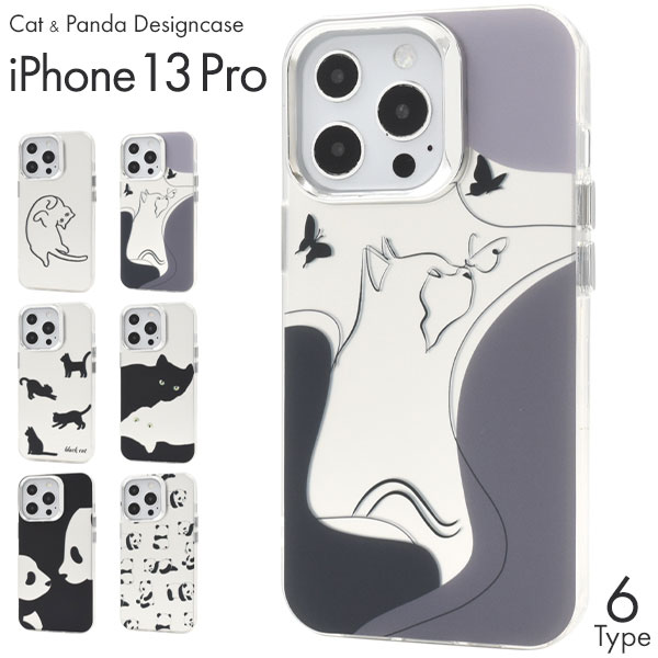 iPhone13 Pro ケース ハードケース ハイブリッド ねことパンダ モノトーンデザイン カバー アイホン アイフォン 13 プロ スマホケース