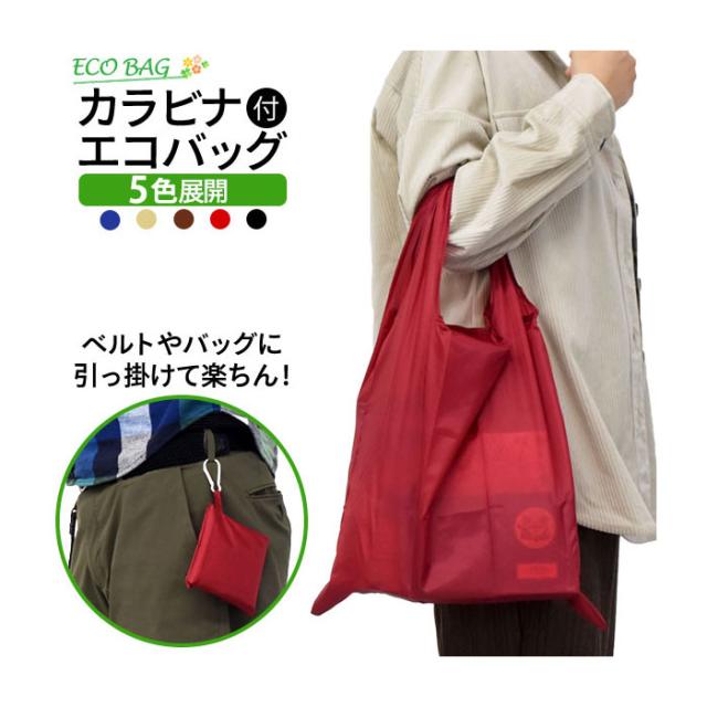 エコバッグ 手ぶらで買い物 カラビナ付きシンプルエコバッグ バッグ