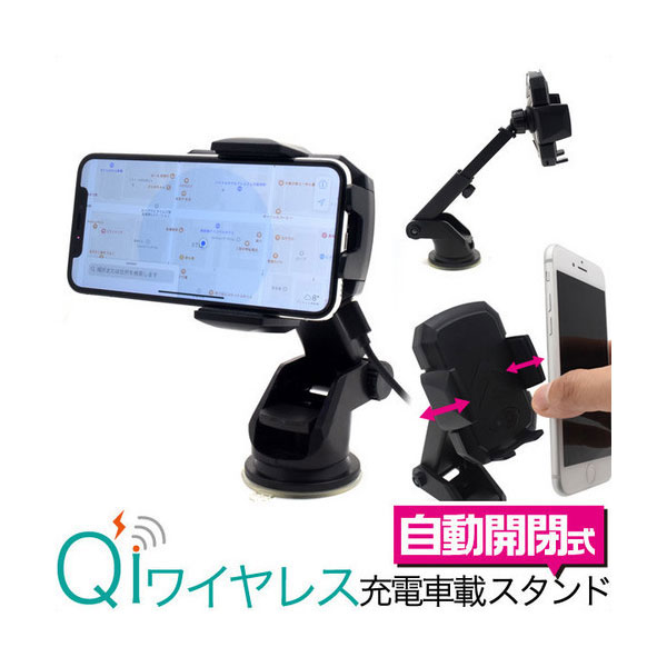 スマホ Qi充電対応 自動開閉式 ワイヤレス充電器 車載ホルダー 車載用充電アームスタンド スマートフォン スマホアクセサリー