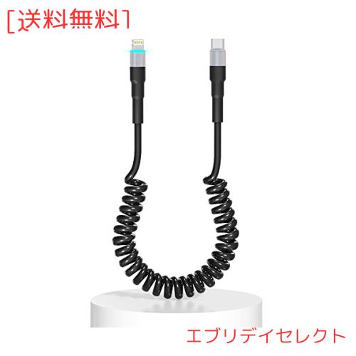 USB C iPhone 充電ケーブル 伸縮コード MFi認証 & CarPlay対応 ライトニング USB C カールコード PD急速充電と高速データ転送ケーブル、U