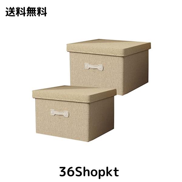 収納ボックス 衣類収納ケース 60L大型綿麻製の収納箱 (2個セット) 折りたたみ ストレージ ボックス レザー ハンドル フタ付き 家庭用 ス