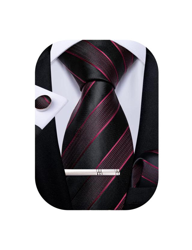 DiBanGu ネクタイ 黒 赤 ストライプ ビジネス用 ネクタイセット メンズ フォーマル 入学式