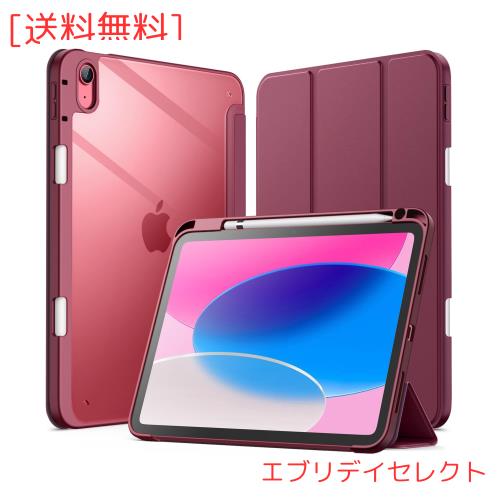 JEDirect iPad 10 ケース(10.9インチ、2022モデル、第10世代用) Pencil収納可能 透明バックカバー 薄型 スタンド 衝撃吸収 タブレットカバー オートウェイク/スリープ機能