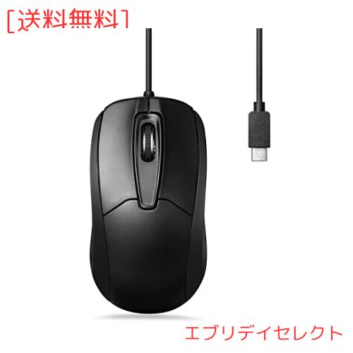 Perixx ペリックス PERIMICE-209C マウス Type-C 有線 光学式 3ボタン ケーブル1.5m1000DPI ブラック Windows 7/8/10, Linux, Mac OS, C
