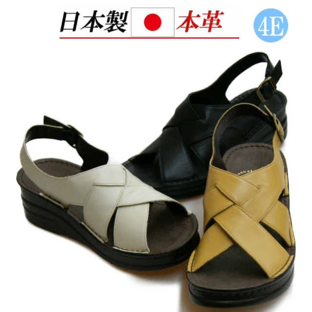 日本製 本革 クロスデザイン サンダル 甲高 幅広 4e 外反母趾 カジュアル 歩きやすい 履きやすい 軽量 軽い 安定感 旅行 疲れにくい ソフトレザー 柔らかい