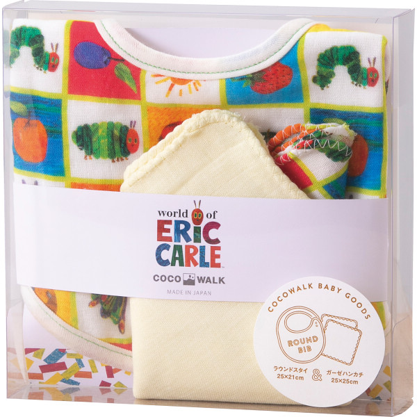 人気絵本のはらぺこあおむしとのコラボシリーズ。何枚あっても助かるスタイとガーゼハンカチ2枚が入ったギフトセットです。