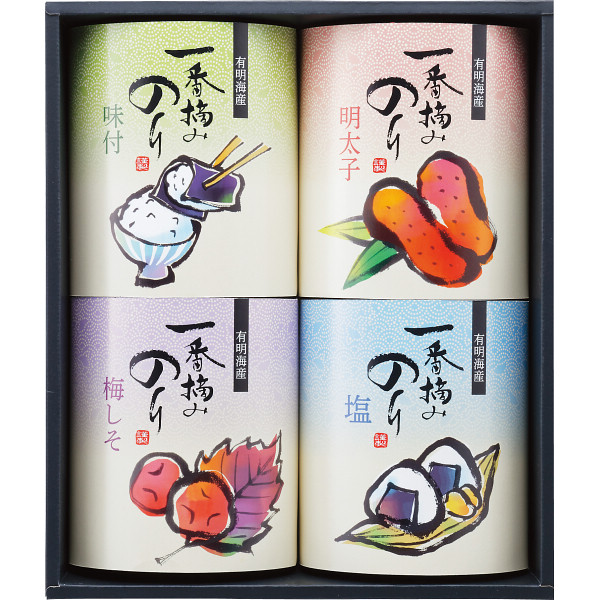 一番摘み有明海産海苔 TC-BO | 24-2898-094食品 食料 食料品 グルメ のり 味付海苔 ギフトプレゼント 贈答 和食 明太子 しお 梅しそ 4種類 フレーバー 美味しい 風味豊か ご飯が進む 卓上容器 化粧箱入り