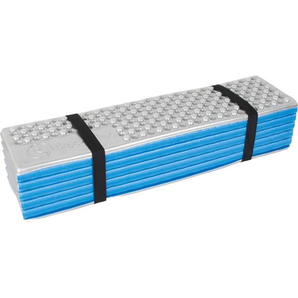 XPE素材とアルミ加工をした折りたたみマット。凸凹デザイン形状なのでクッション性があります。熱の反射、湿気や冷気の遮断など季節や場所によって使い分けができます。収納バンド2本、収納袋付き。