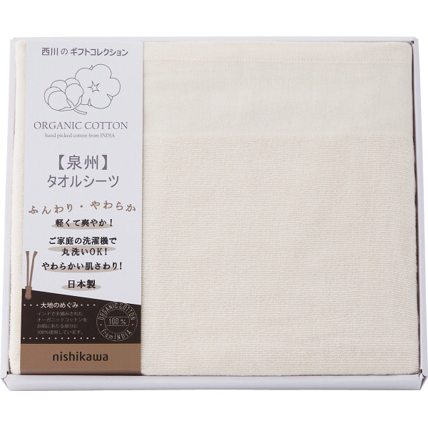 西川 オーガニックコットン タオルシーツ CM83060068 | 24-7553-051生活用品 敷きパット タオルシーツ 布団 ふとん 敷きぶとん 寝具 寝室 便利 快適 日本製 ふんわり 柔らか お祝い お返し お礼品 プレゼント 贈り物 新築祝い 結婚祝い 出産祝い 化粧箱入