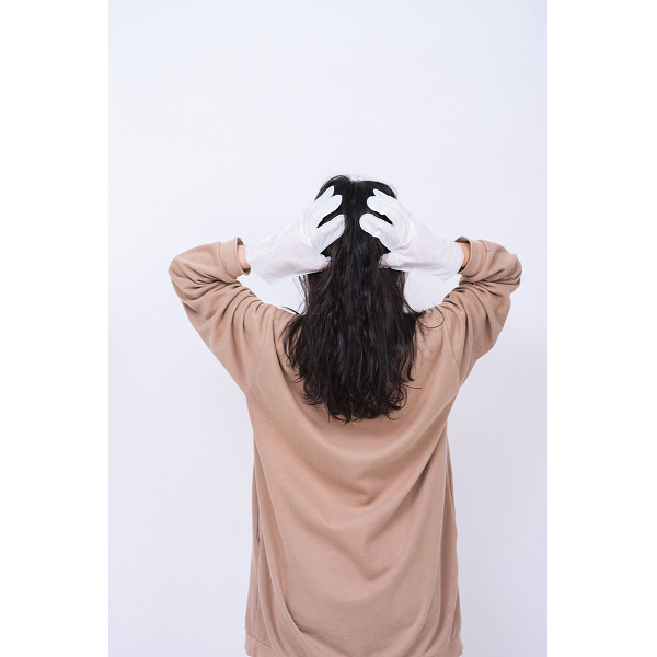 手袋型だから子供〜高齢者まで洗髪しやすい(濯ぎ不要)