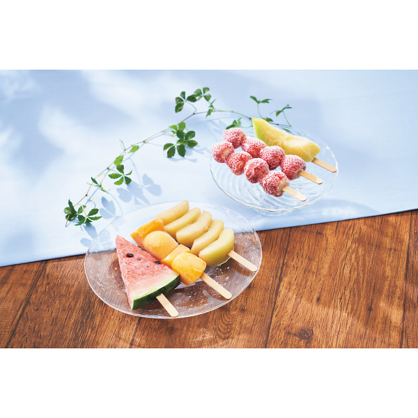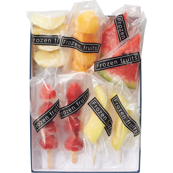 ●冷凍ラフランススティック・冷凍柿スティック各1本、冷凍イチゴスティック・冷凍スイカアイス・冷凍メロンスティック各2本 ※凍ったまま又は半解凍でお召し上がりください。