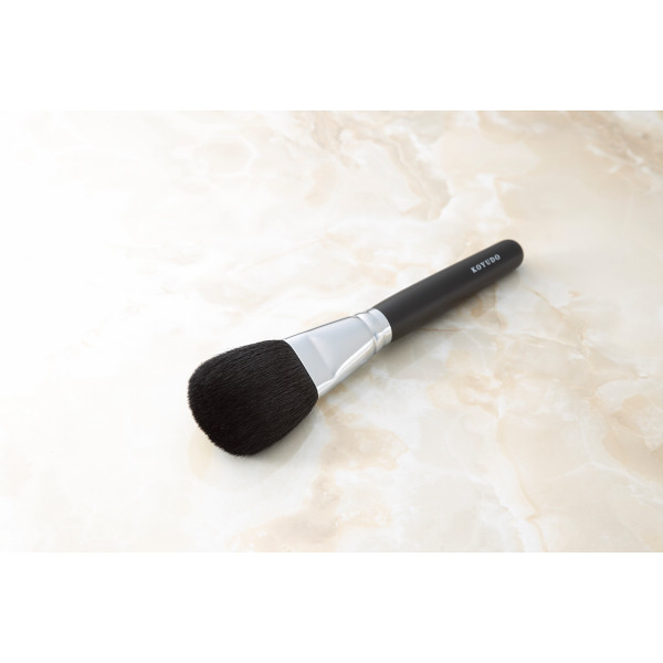 穂先には山羊毛を使用しています。パウダーブラシの中でも小さめなサイズが特徴で、パウダーにもチークにもお使いいただける筆です。