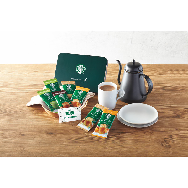 スターバックスの本格的なコーヒーに、ロゴ入りのペアマグをセットした詰め合わせ。毎日のコーヒーをカフェのムードで少しおしゃれに楽しんでいただくのにぴったりなセットです。