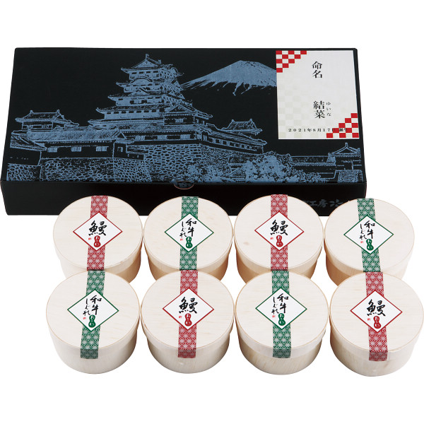 ●うなぎおこわ(国産うなぎ使用)・黒毛和牛しぐれ煮おこわ各110g×各4(計8個)、山椒×4