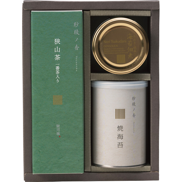一番茶入り狭山茶・焼海苔・のり佃煮詰合せ SR3A-B | 24-2900-063狭山茶 手巻き焼海苔 のり佃煮 プレゼント 贈答 進物用 お祝い お礼 お返し 詰合せ 詰め合わせ 贈り物 ギフトセット お中元 お歳暮 志 食品 料理 化粧箱入り