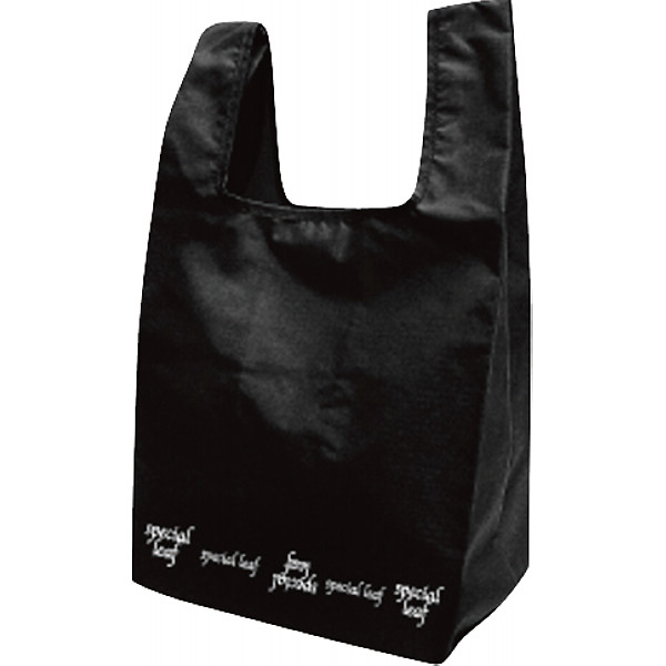 広げると、レジ袋と同型のマイバッグ。いつでもいっしょにおでかけ。収納ポーチ付き。