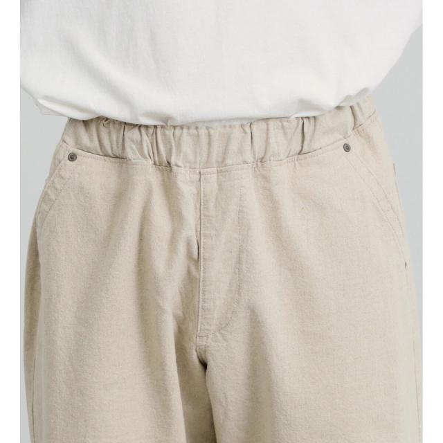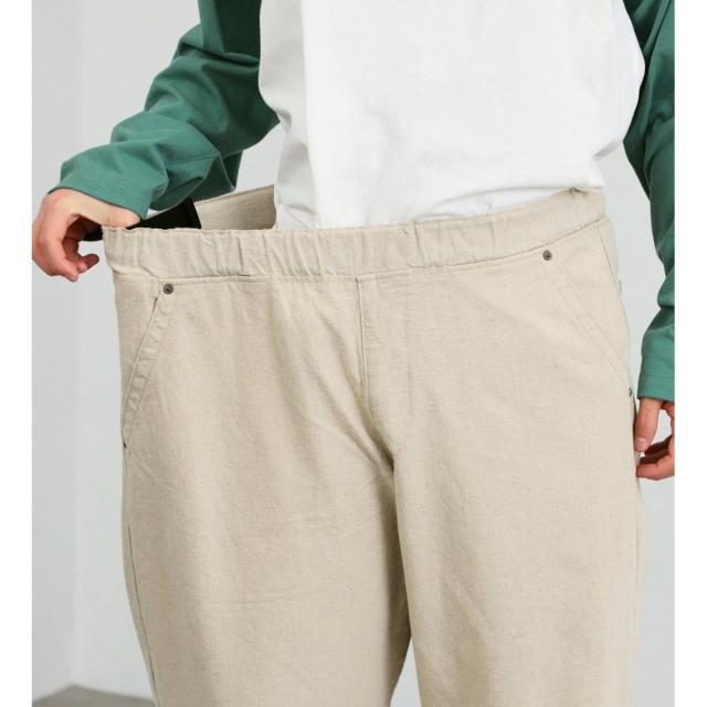 シルエットはモモ周りには適度なゆとりを持たせながら、ヒザからスソにかけて徐々に細くなるテーパードシルエット。