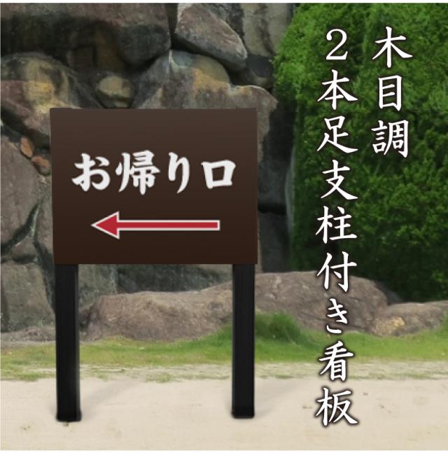 お帰り口 木目調 2本足支柱付き看板 プレートサイズ:H300×W400ミリ/ 帰り道 誘導看板 案内看板 順路 参拝 m-ssl-shrine04