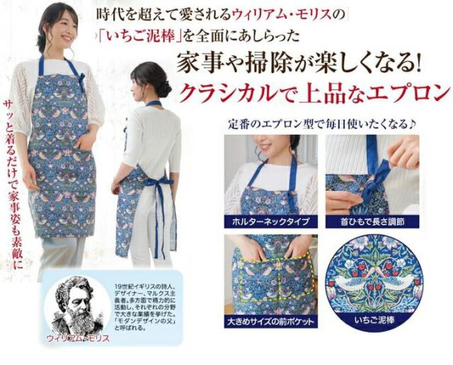 ウィリアム・モリス いちご泥棒 エプロン エレガントエプロン ホルターネックタイプ エプロン 家事 掃除 料理 キッチン 調理 グッズ お母さん おばあちゃん 割烹着 母の日のプレゼントにおすすめ 料理教室 おしゃれママ