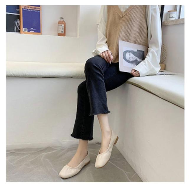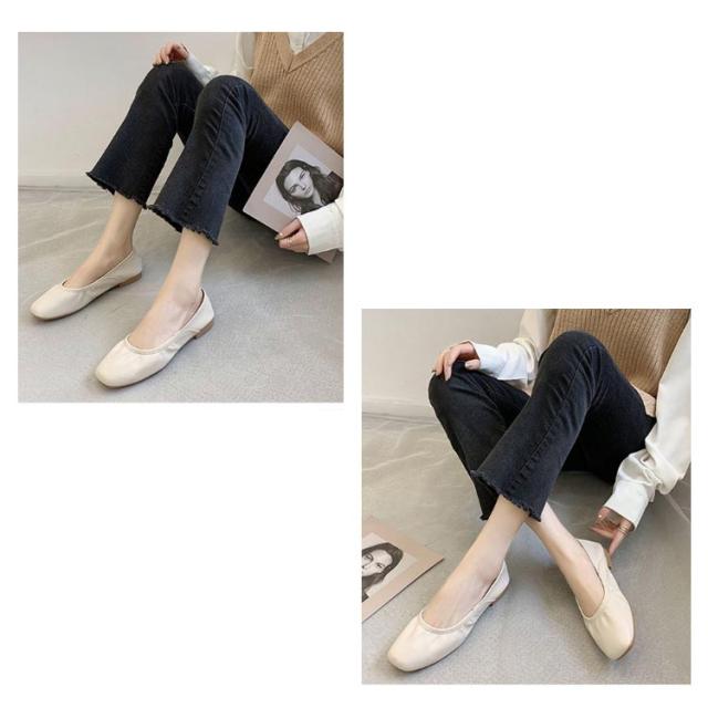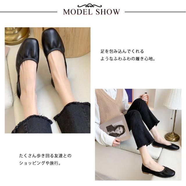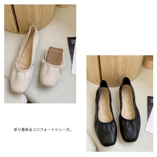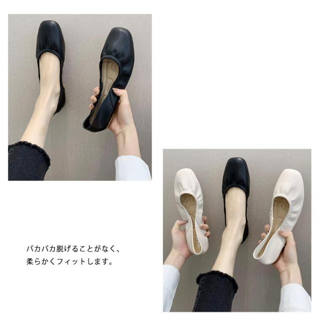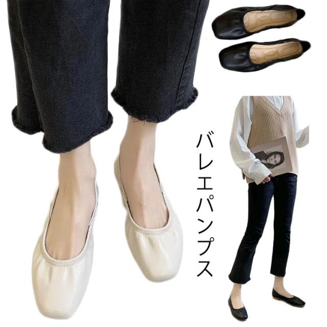 レディース バレエシューズ スクエアトゥバレエシューズ パンプス フラット サイズ OL きれいめ シンプル 履きやすい 歩きやすい クッション 送料無料
