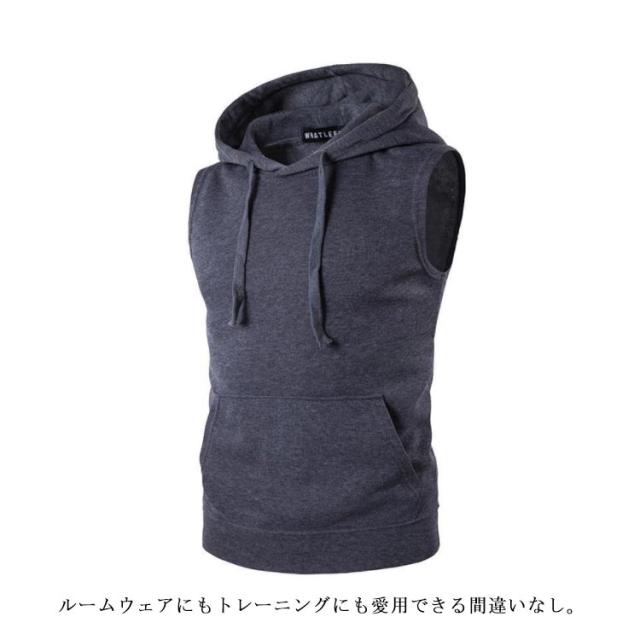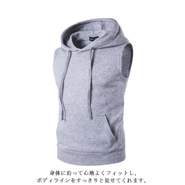 パーカー ノースリーブ フード付ベスト フード付き タンクトップ メンズ 袖なし パーカ ノースリーブパーカ ランニングシャツ スポーツウエア トレーニングウェア ジムウェア ストリート系 部屋着 ルームウエア