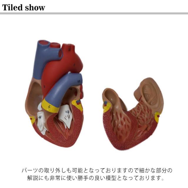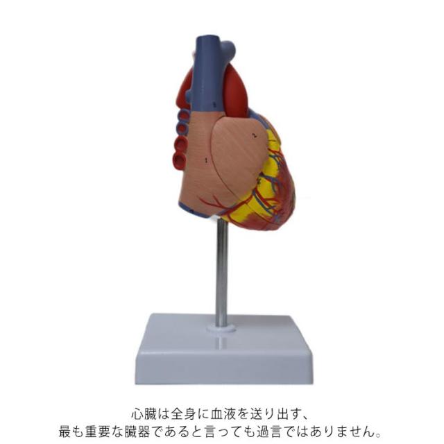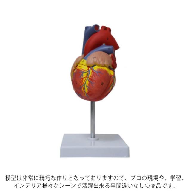 | 分解可能で、内部の人間の心臓の構造を 立体的に観察でき構造を深く理解できます。 パーツの取り外しも可能となっておりますので細かな部分の解説にも非常に使い勝手の良い模型となっております。 実物大の心臓を 表現した 模型でございます。 模型は非常に精巧な作りとなっておりますので、プロの現場や、学習、インテリア様々なシーンで活躍出来る事間違いなしの商品です。 心臓は全身に血液を送り出す、最も重要な臓器であると言っても過言ではありません。 心臓の構造は比較的シンプルですが、筋肉、血管、弁など、全身の循環と肺循環を切り替える仕組みが備わっています。 この心臓模型は心臓の構造を実物大で精密に再現していますので、心臓の仕組みのほとんど全てを理解でき、その位置関係を立体的に知ることができます。 心臓の4つの部屋(左心房、左心室、右心房、右心室)の位置関係と構造を明確に理解できます。 酸素飽和度によって、血管が色分けされていますので、血流の流れの理解がしやすいです。 | |