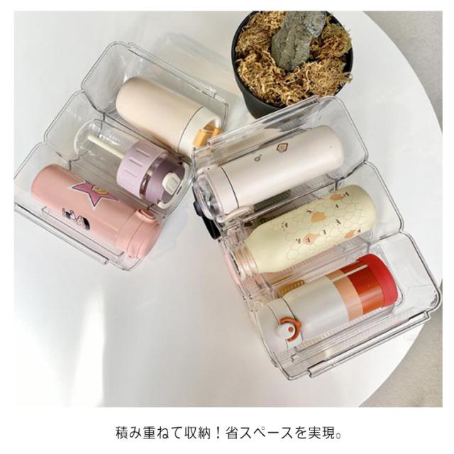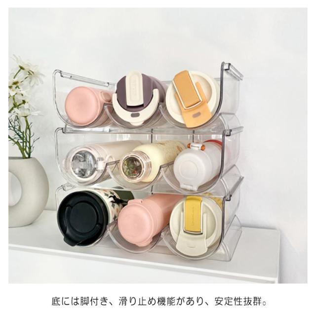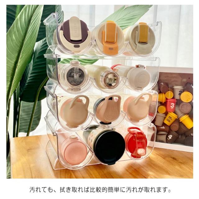 | 水筒やボトルをまとめて収納できる収納ラック。 積み重ねて収納!省スペースを実現。 水筒の整理にぴったりなシステム収納に! 透明なので、お部屋のインテリアにしっくり馴染みます。 底には脚付き、滑り止め機能があり、安定性抜群。 汚れても、拭き取れば比較的簡単に汚れが取れます。 | |