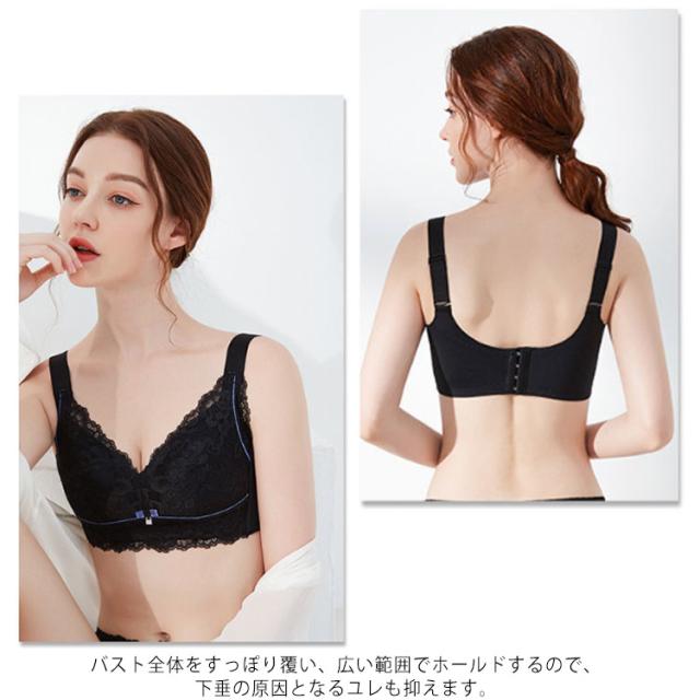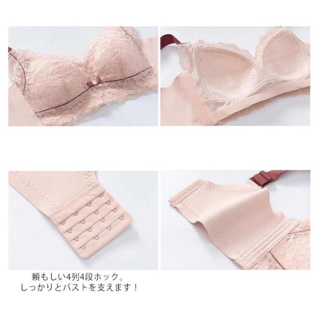 | サイドの脇高効果でハミ肉をキャッチ! 頼もしい4列4段ホック。しっかりとバストを支えます! U字のバックスタイルで肩への負担も軽減し、後ろ姿もすっきり! フロントや脇だけでなく、背中までしっかりホールド。後姿もスッキリ美人に! 胸より小さく見えるようにカップの膨らみは極限まで抑えながら、美しいバストラインを実現。 バスト全体をすっぽり覆い、広い範囲でホールドするので、下垂の原因となるユレも抑えます。 | |