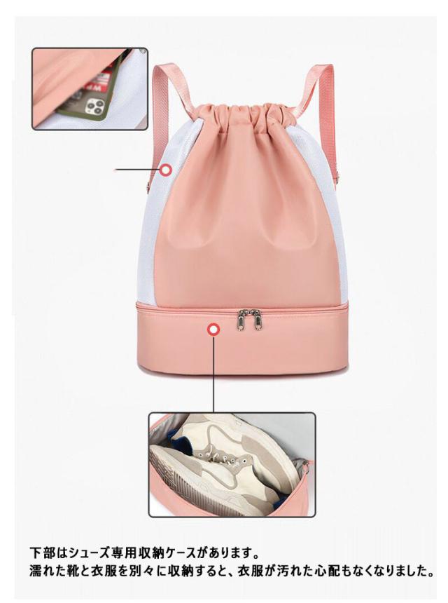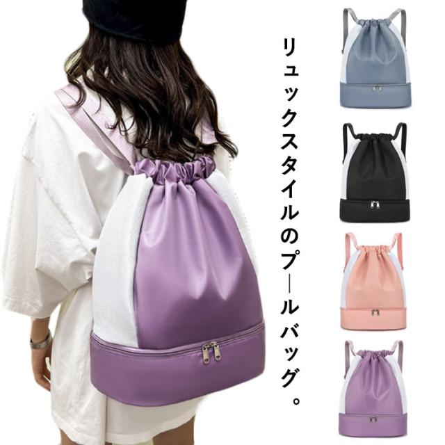 ナップサック ジムサック プールバック スポーツバッグ プールバッグ スイムバッグ 2層式 大人 乾湿分離 巾着袋 プールバッグ おしゃれ キッズ ビーチバッグ 男女兼用 シューズ収納 大容量 学生 防水 軽量 水泳 運動 旅行 リュックサック 水泳バッグ