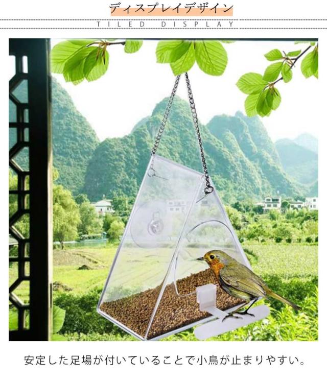 バードフィーダー 透明 鳥 餌台 給餌器 野鳥 小鳥 餌入れ エサ入れ えさ台 エサ台 吊り下げ 鳥小屋 鳥の餌置き エサ置き エサ箱 餌箱 餌場 巣箱 スタンド 鳥小屋 クリアバードフィーダー プラスチック バードウォッチング 野鳥観察 洗える 三角形 円形 ガーデン ベランダ 庭