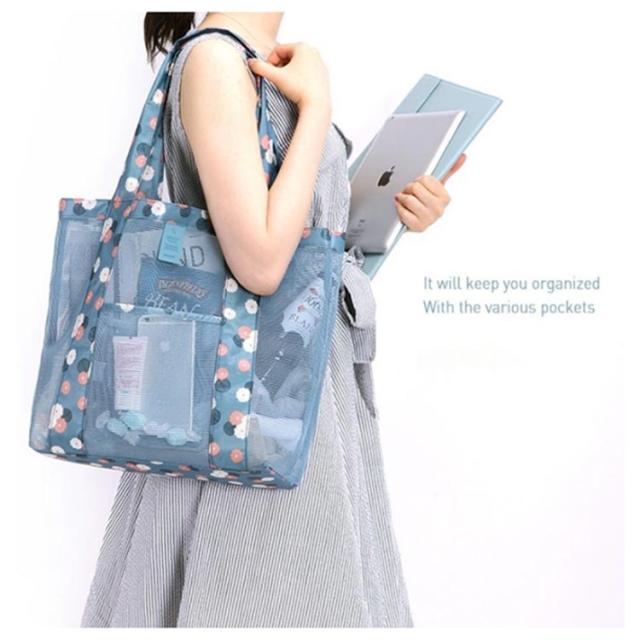 | 使いやすいトート形のメッシュバッグ。 海水浴、旅行、ビーチバッグとしても最適。 しっかりした大きさなので、お着替えや、タオルなど大容量で収納可能です! 長めの持ち手のため、肩にかけて持てます。もちろん手で提げて持つことも出来ます。 メッシュ素材なので中に入れた荷物が外から確認でき、忘れ物をしにくい♪ | |