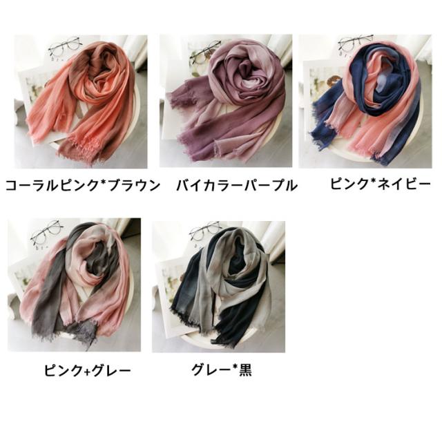 スラブヤーン素材 亜麻 冷房対策 薄手 日除け ショール マフラー バイカラー 190cm*90cm 羽織り 大判 ストール 上質 柔らかい 軽い レディース