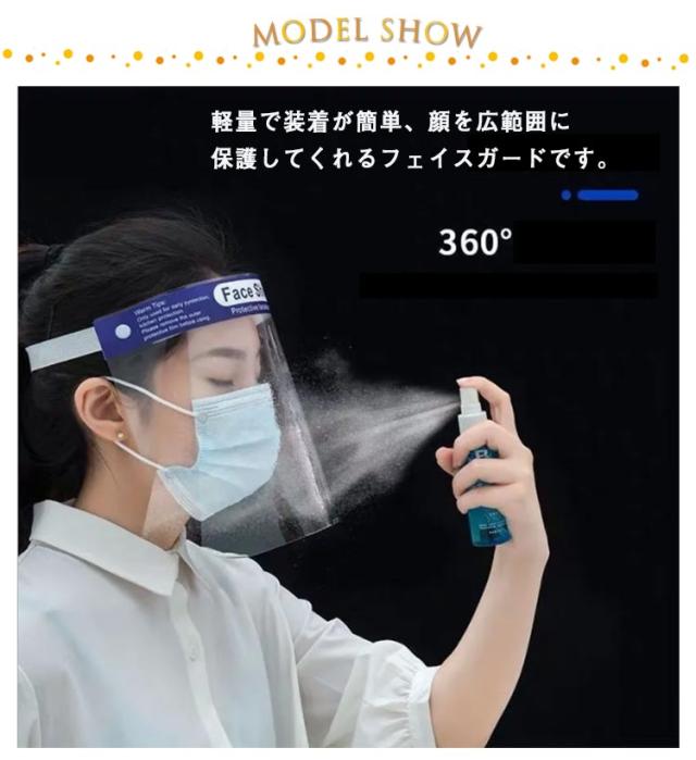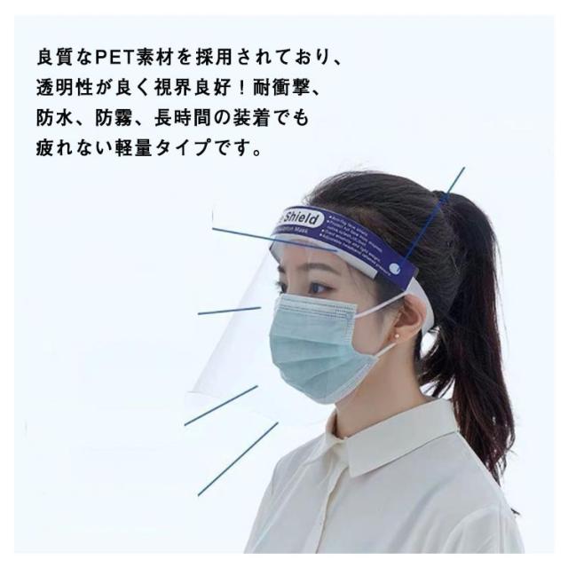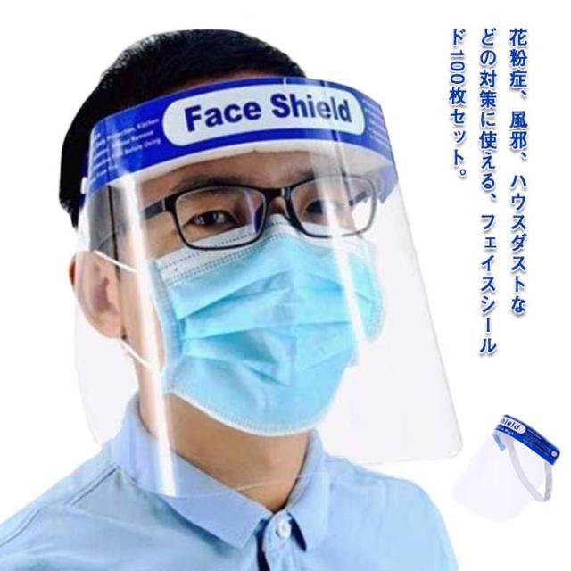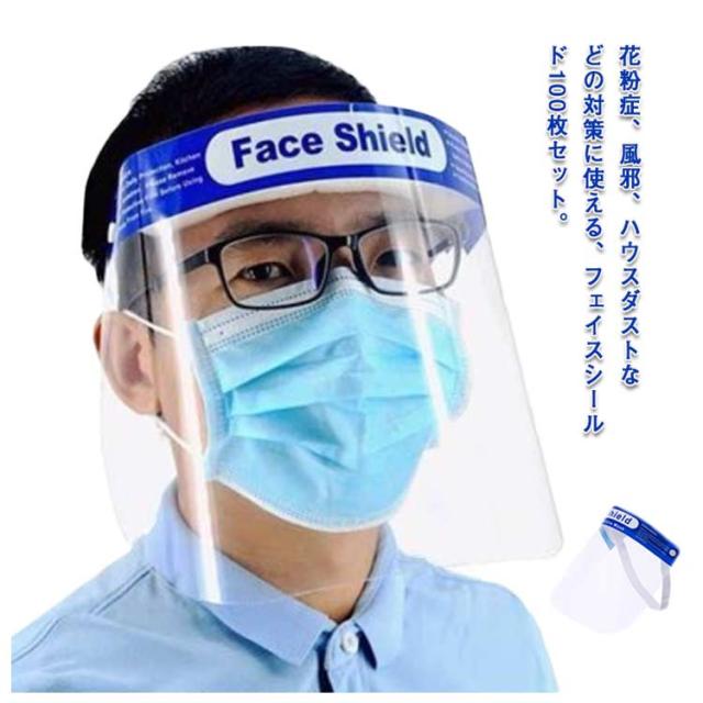 フェイスド フェイスガード 透明ド 100枚入 防護マスク 曇り止め 油はね防止 透明 洗える フェイスカバー ウィルス対策 防塵 花粉症対策 飛沫を防ぐ 防塵 感染対策 男女兼用 マスク併用 高透過率 飲食店 接客業