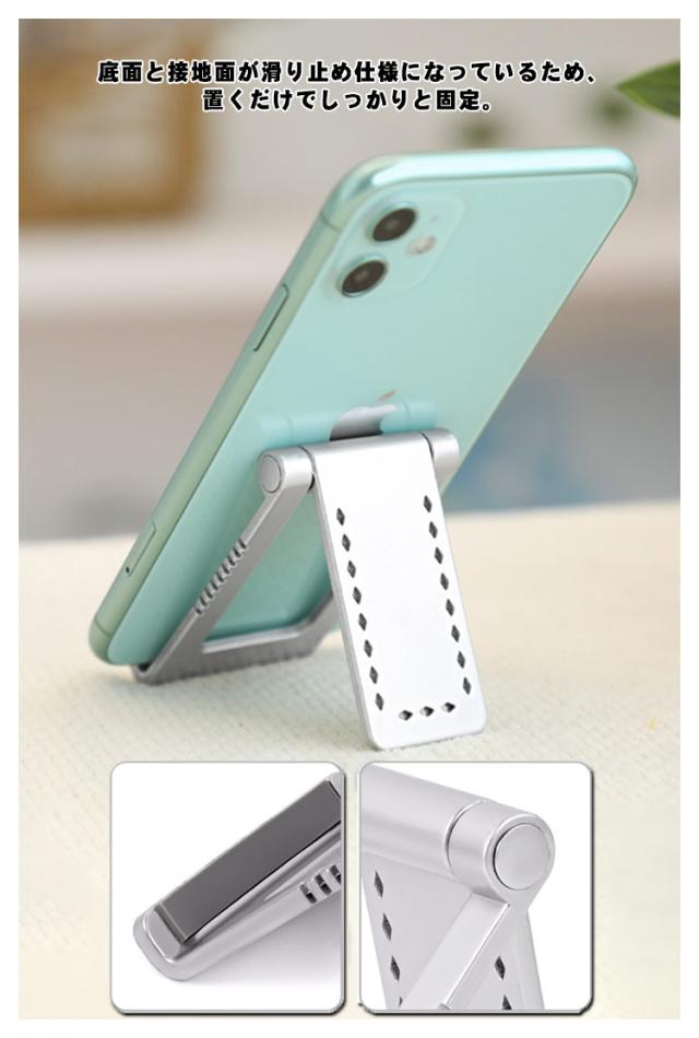 送料無料 スマホスタンド アルミ製 スマートフォンスタンド おりたたみ 角度調整 小型 軽量 iPhone スマホ 卓上 デスク Android かわいい おしゃれ タブレットスタンド 薄型 持ち運び 携帯スタンド 在宅勤務