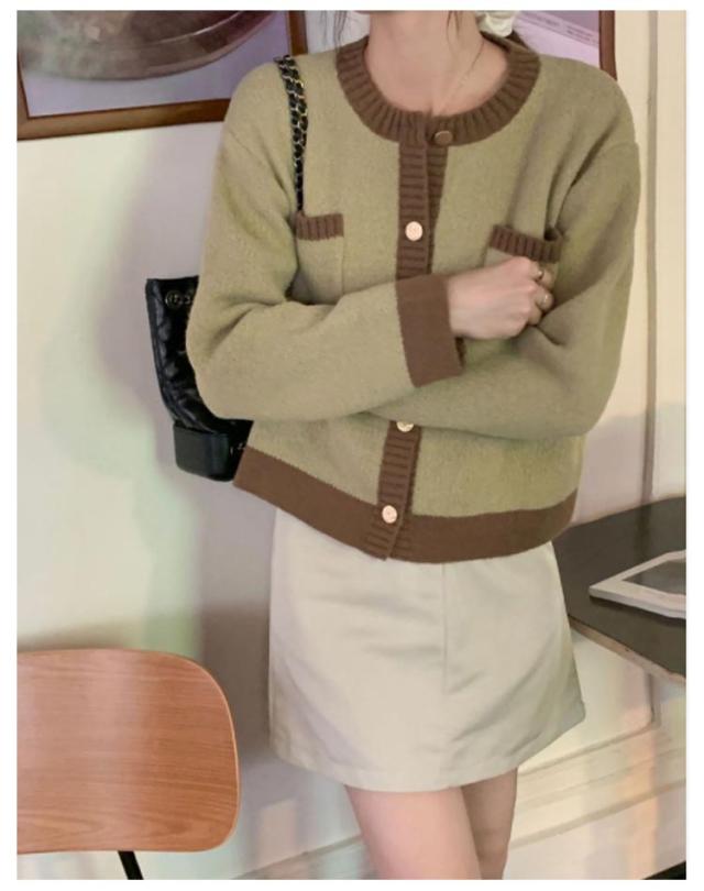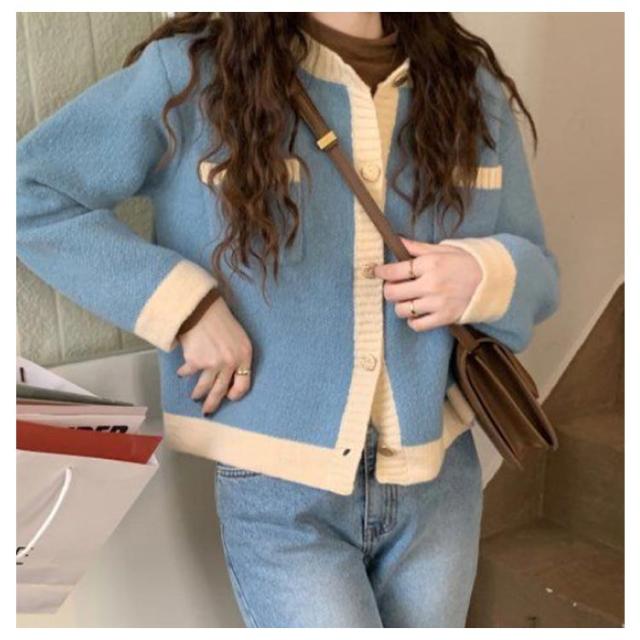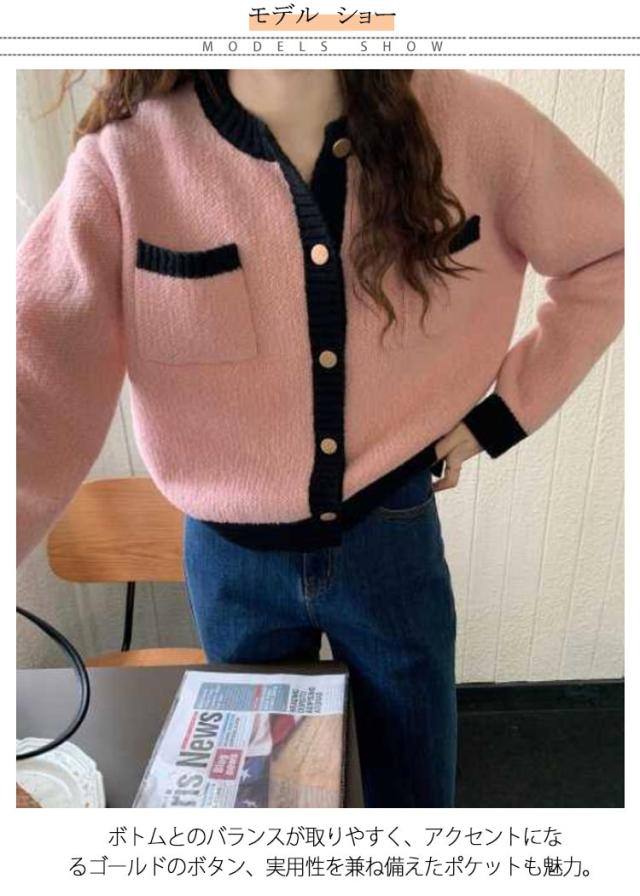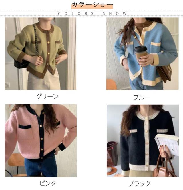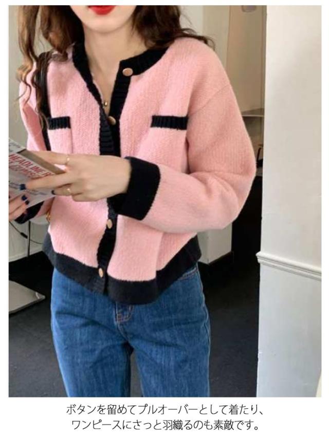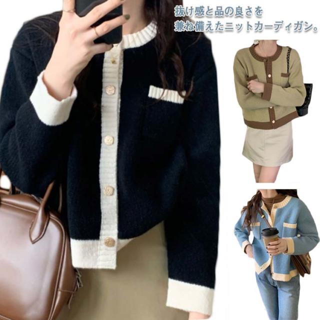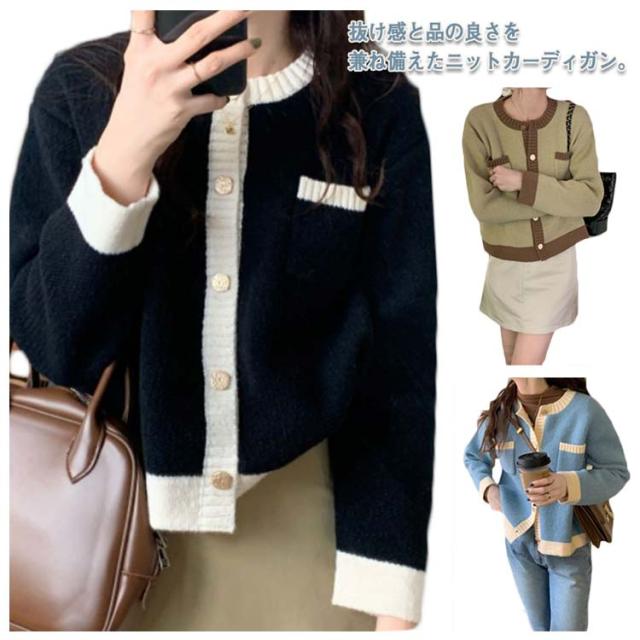 カーディガン ニットカーディガン レディース ショート丈 ニットカーデ 長袖 トップス ライン入り バイカラー カーディ 羽織り アウター 洗える 春 秋 冬 通勤 通学 オフィス 送料無料