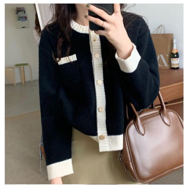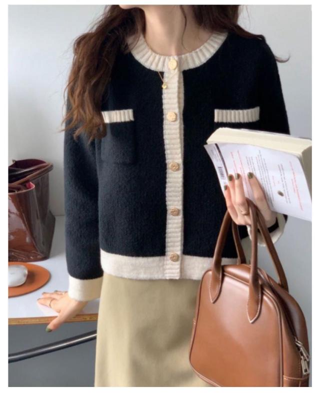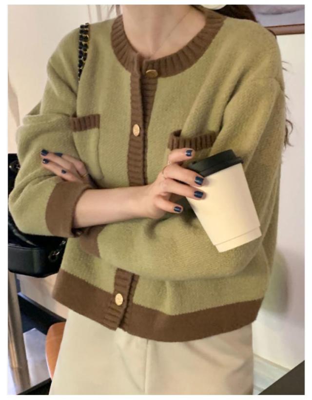 | 抜け感と品の良さを兼ね備えたニットカーディガン。 ボトムとのバランスが取りやすく、アクセントになるゴールドのボタン、実用性を兼ね備えたポケットも魅力。 ボタンを留めてプルオーバーとして着たり、ワンピースにさっと羽織るのも素敵です。 ライン入りのバイカラーデザインで、1枚で着映えするアイテムです。 | |