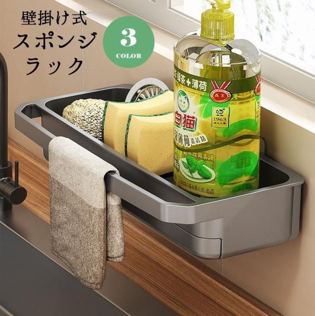 スポンジラック 水切りラック 壁掛け ウォール 水切りかご スポンジ置き ふきん掛け たわし置き 布巾かけ キッチン用品 台所用